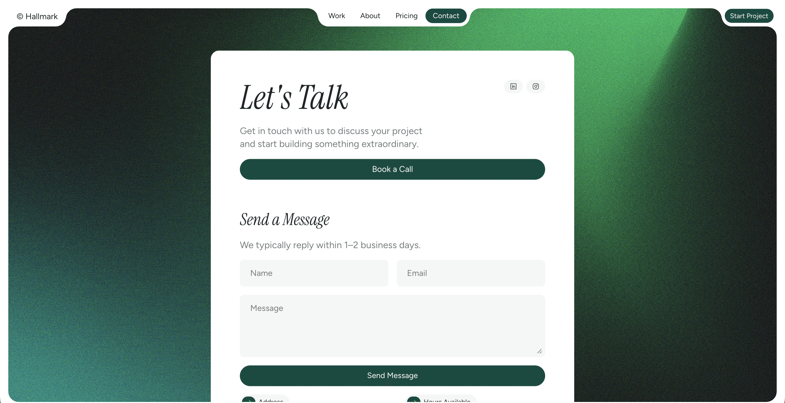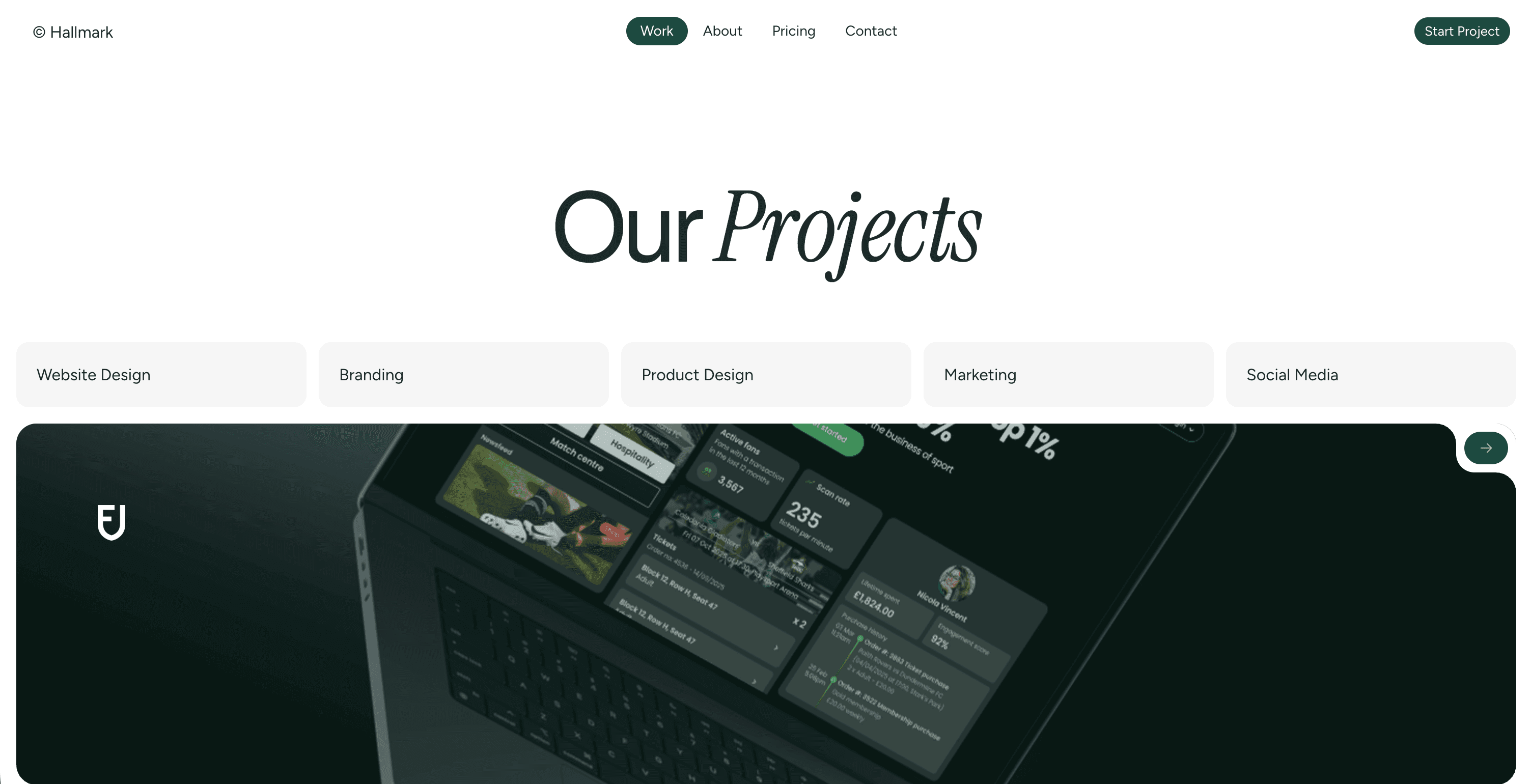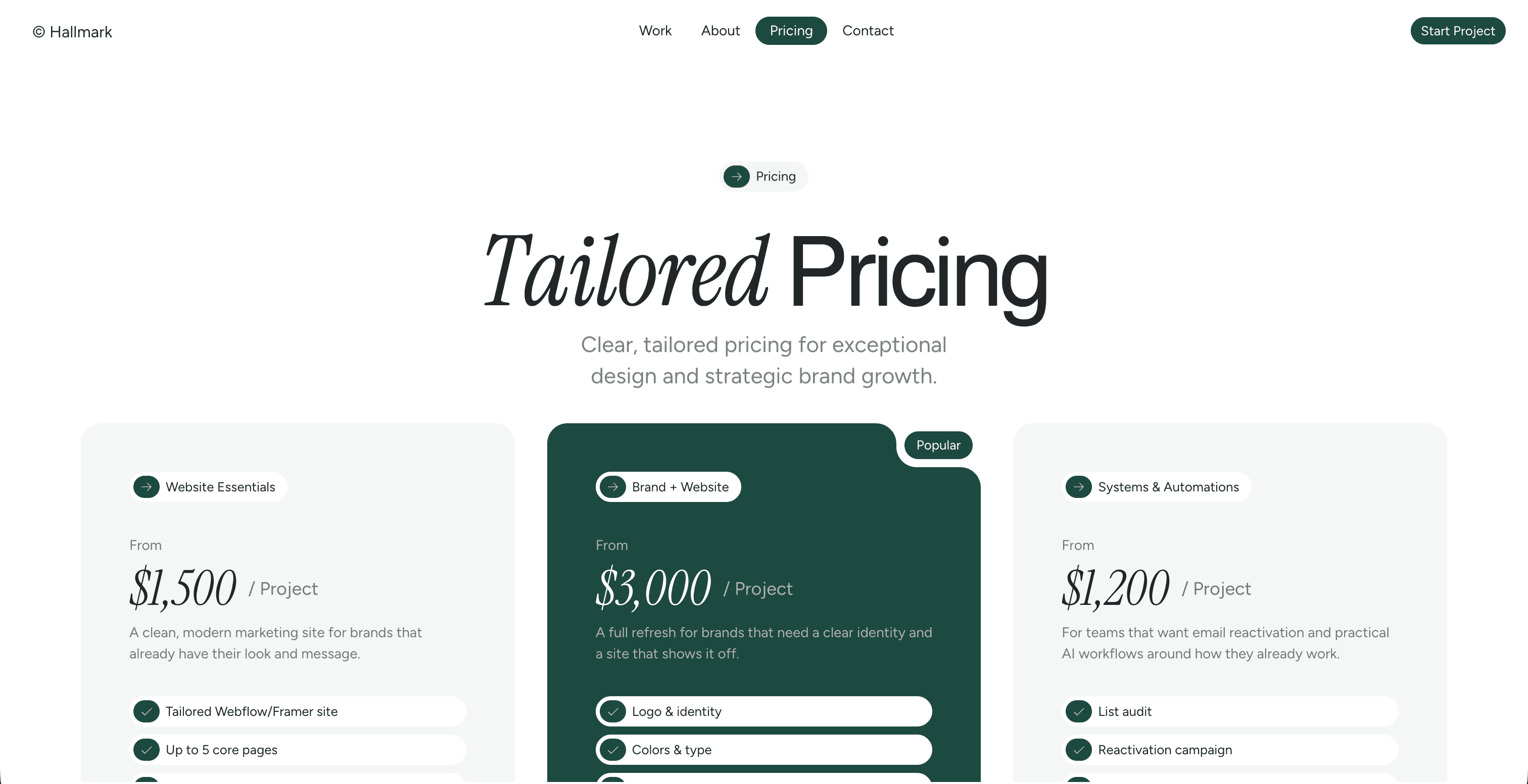 Hallmark Studio is my web design studio, built to showcase my work and position how I approach modern websites: clean, fast, and conversion focused. I designed the site as both a portfolio and a sales tool, with clear messaging, a structured narrative, and a layout system that makes the work easy to scan.